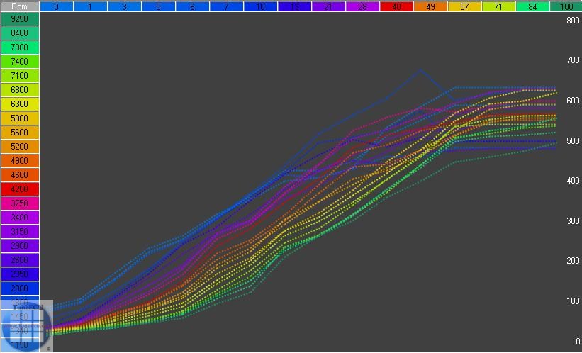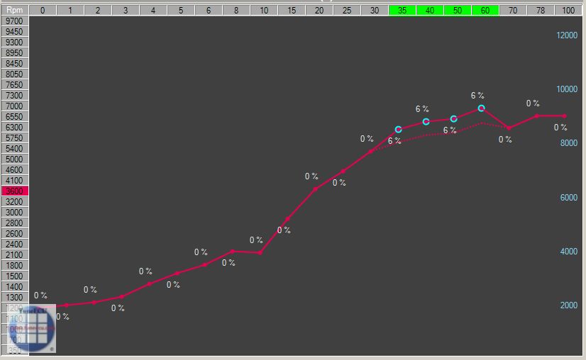 Change-over F-L: the transition of the tables F after L and vice versa (RPM vs. throttle % open).