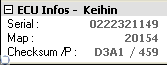 Serial, map, checksum (check sum) Information on the ECU: Serial, mapping,